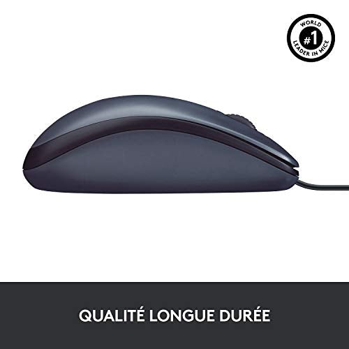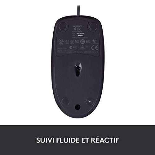 Logitech B100 Souris Filaire USB, 3 Boutons, Suivi Optique, Ambidextre, Compatible avec PC/Mac/Ordinateur Portable/Chromebook - Noire