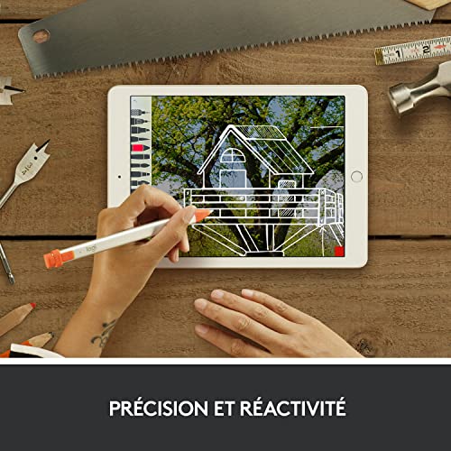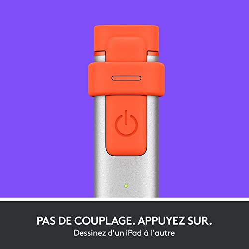 - Logitech Crayon Stylet numérique pour tous les iPad avec technologie Apple Pencil, conception stable et pointe intelligente dynamique - Argent/Orange