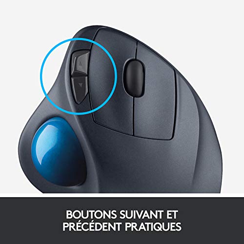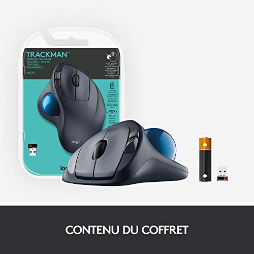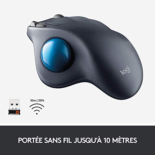 Logitech M570 Trackman Souris Trackball sans Fil, 2,4 GHz avec Récepteur USB Unifying, Ergonomique, Roulette de Défilement, Boutons Programmables, Batterie 18 Mois, PC/Mac/Portable - Noir