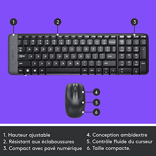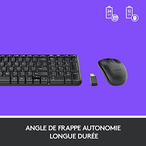 Logitech MK220 Combo Clavier Souris sans Fil pour Windows, 2,4 GHz avec Récepteur USB Unifying, Souris sans Fil, Batterie Longue Durée 24 Mois, PC/Portable, Clavier AZERTY Français - Noir