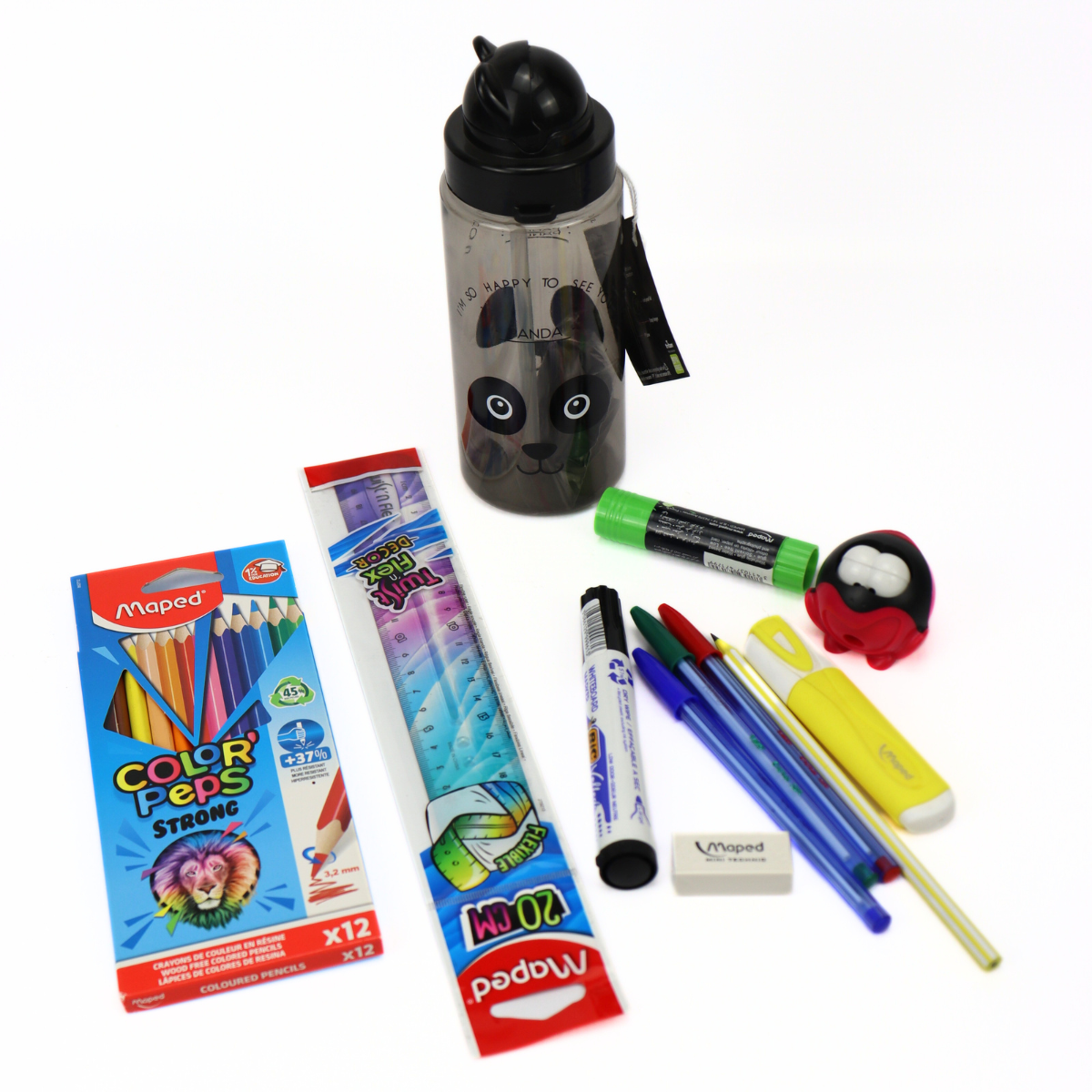 Pack scolaire complet – Gourde + Trousse garnie – Petit prix