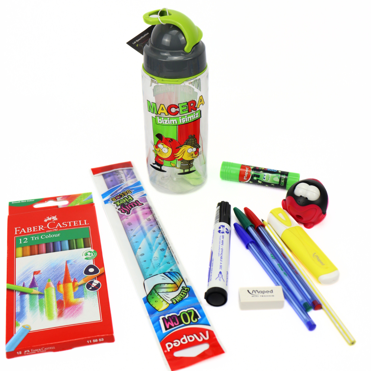 - Pack scolaire 5 complet – Gourde + Trousse garnie – Petit prix