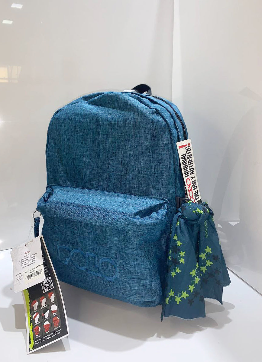 🎒 Sac à dos Polo – Double Poche "Backpack + Scarf" Bleu