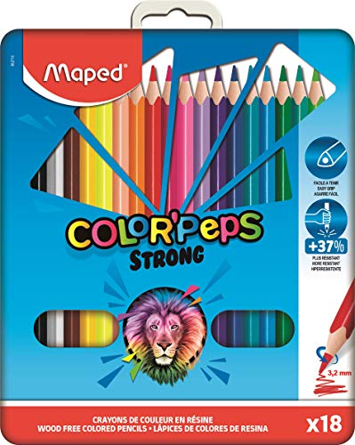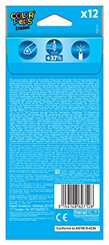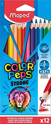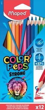 Pochette carton de 12 crayons de couleurs en résine Maped. Retrouvez cet incontournable des trousses de rentrée dans une version, à emporter partout. Grâce à leurs mines d'un diamètre de 3,2mm, les crayons Strong résistent à tout, fini les mines qui cassent pendant le coloriage ou le taillage, les enfants vont pouvoir laisser libre court à leur créativité sans limite !